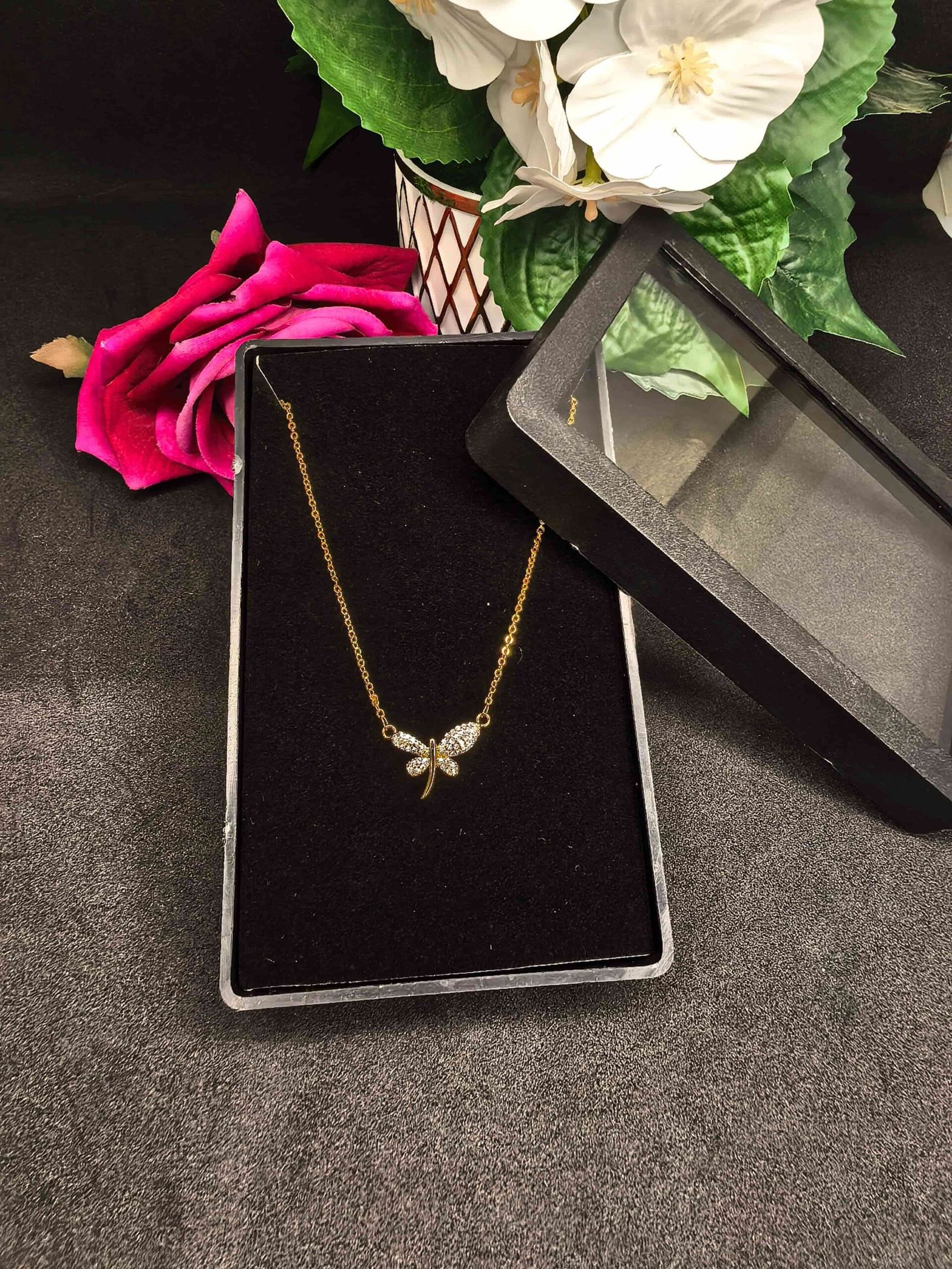 Include: ১টি বাটারফ্লাই পেনডেন্ট নেকলেস ও ১ জোড়া ম্যাচিং ইয়াররিং