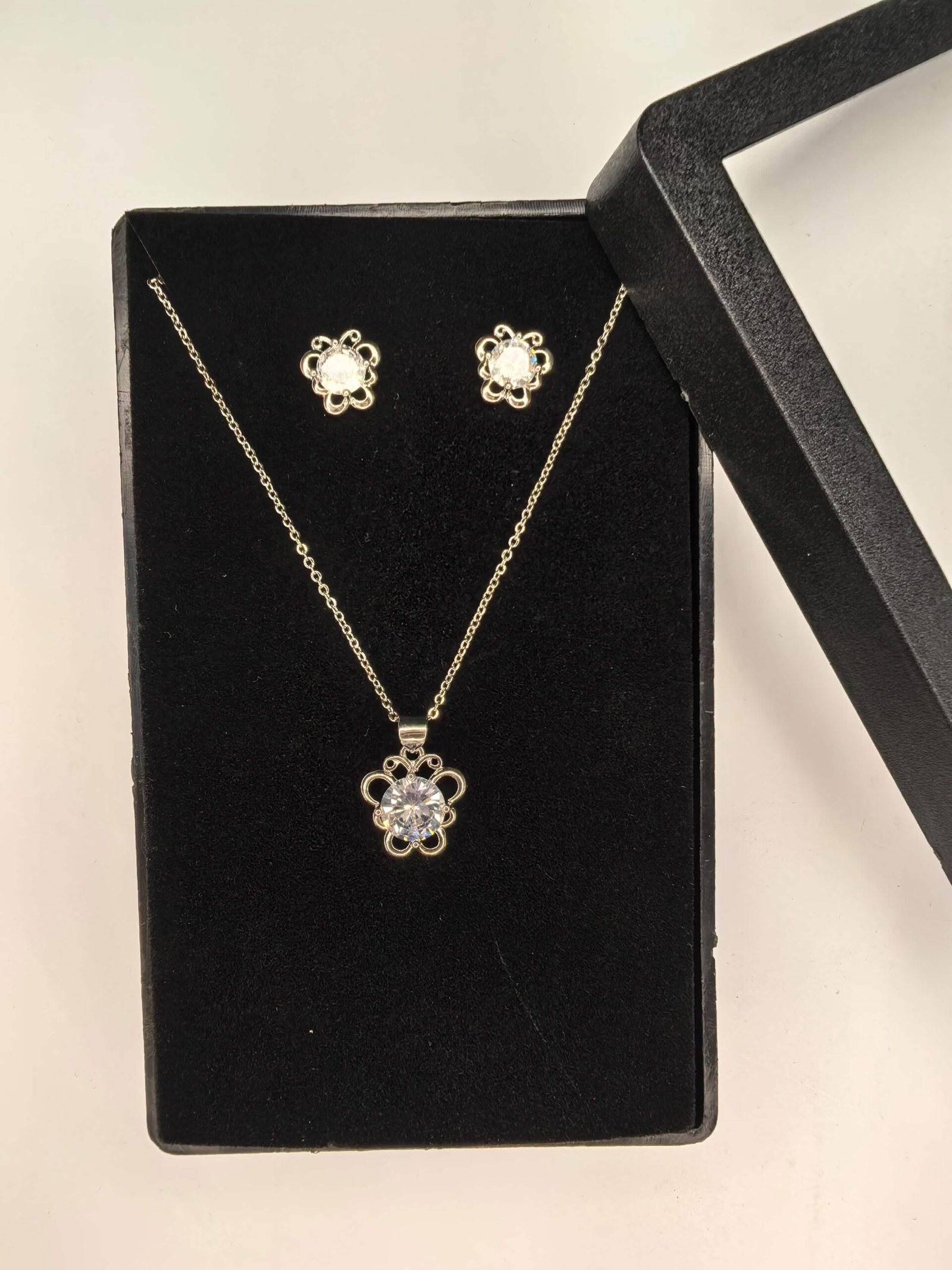 2pcs silver stone necklace set for ladies-মহিলাদের জন্য ২-পিস সিলভার স্টোন নেকলেস সেট, পার্টি ও উৎসবের জন্য পারফেক্ট