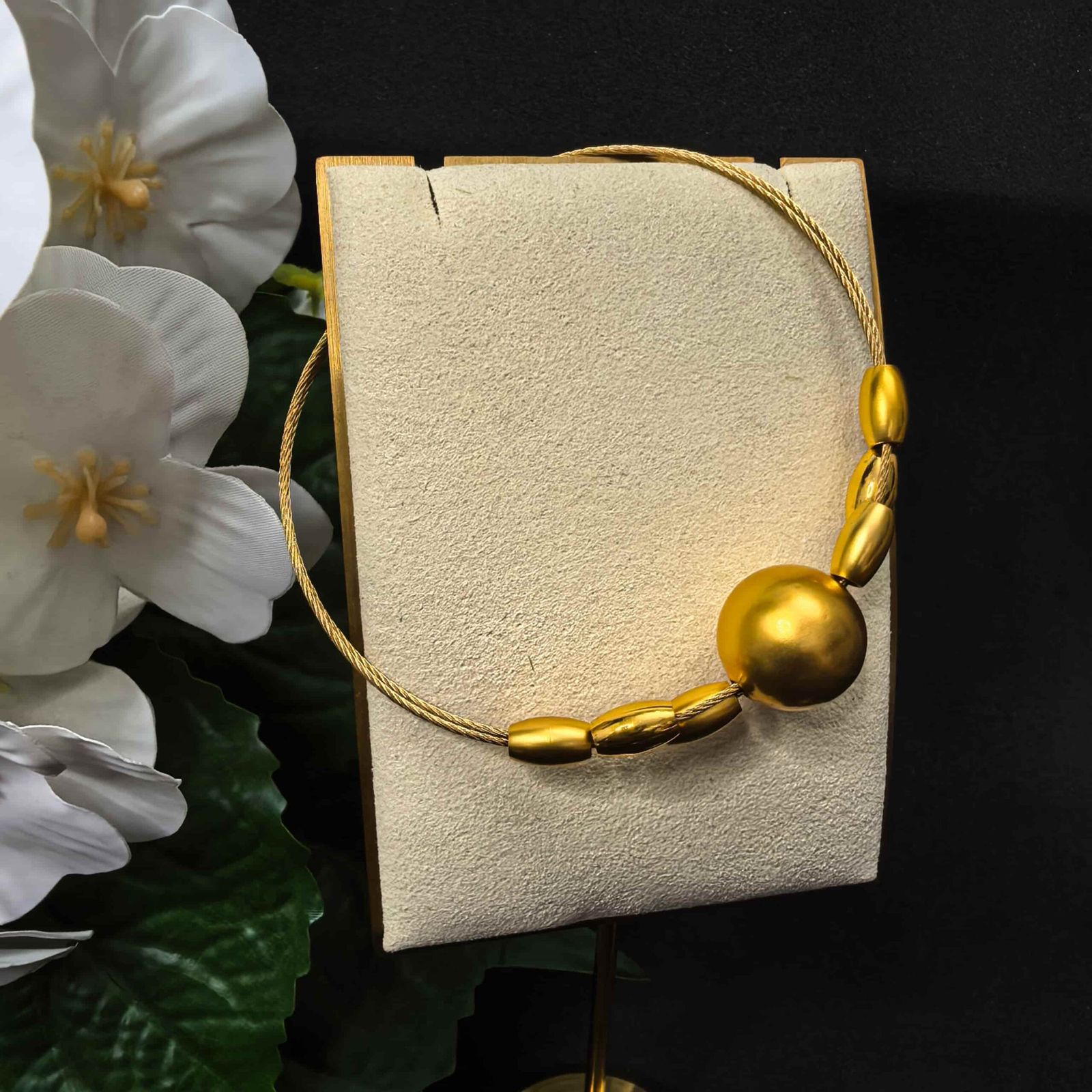 বাংলাদেশে গোল্ড নেকলেস সেটের মধ্যে এই 3 pieces gold plated necklace set for women এক কথায় অনবদ্য। এই সেটটি মূলত সেইসব মহিলাদের জন্য ডিজাইন করা হয়েছে, যারা ক্লাসিক আভিজাত্যের সাথে মডার্ন ফ্যাশনের সমন্বয় পছন্দ করেন। উন্নত মানের অ্যালয় মেটালের ওপর প্রিমিয়াম গোল্ড প্লেটেড ফিনিশ এবং বিভিন্ন আকৃতির গোল্ডেন ওভল ও রাউন্ড বিডের ব্যবহার এটিকে দিয়েছে এক গর্জিয়াস ও লাক্সারি ভাইব।