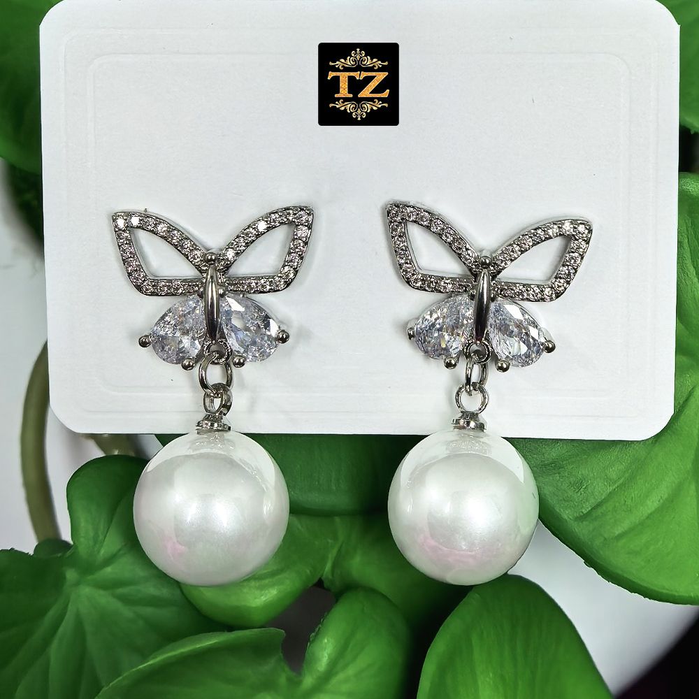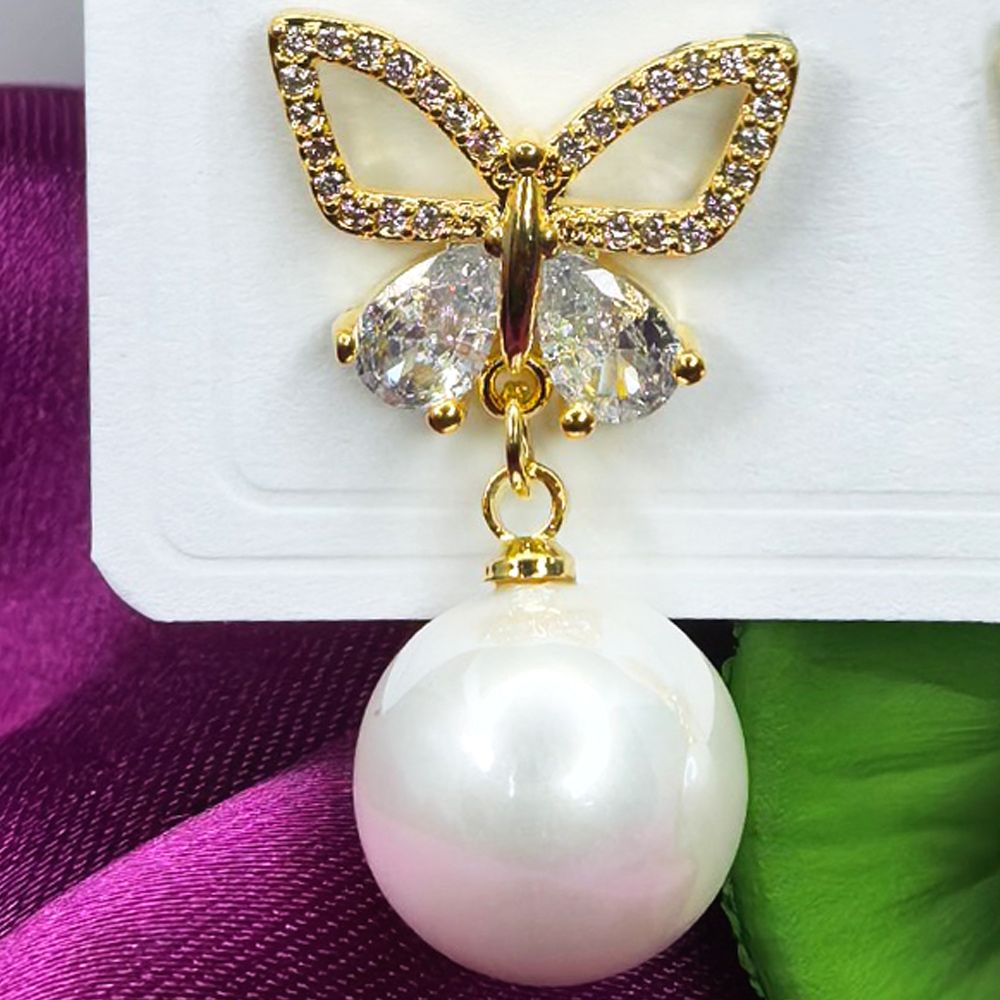 Silver and Gold Toned Butterfly Shape Earrings with White Pearl আপনার ফ্যাশনে এক মায়াবী এবং Elegant Soft Look ফুটিয়ে তুলতে অনন্য। এটি মূলত এক জোড়া Butterfly Pearl Earrings বা Hanging Stud Earrings যা আপনার কানে এক ক্লাসি ও মেয়েলি লুক তৈরি করবে। এতে রয়েছে অত্যন্ত আকর্ষণীয় Butterfly Design যার নিচে যুক্ত করা হয়েছে একটি প্রিমিয়াম Artificial White Pearl। এই ইয়াররিংয়ের বডিতে থাকা সাদা পাথরগুলো মূলত Cubic Zirconia বা ক্রিস্টাল টাইপ, যা আপনাকে দেবে এক Classic Perfection।