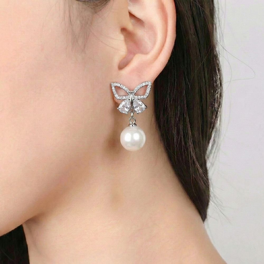 Silver and Gold Toned Butterfly Shape Earrings with White Pearl মহিলাদের জন্য এলিগ্যান্ট বাটারফ্লাই পার্ল ইয়াররিং কালেকশন