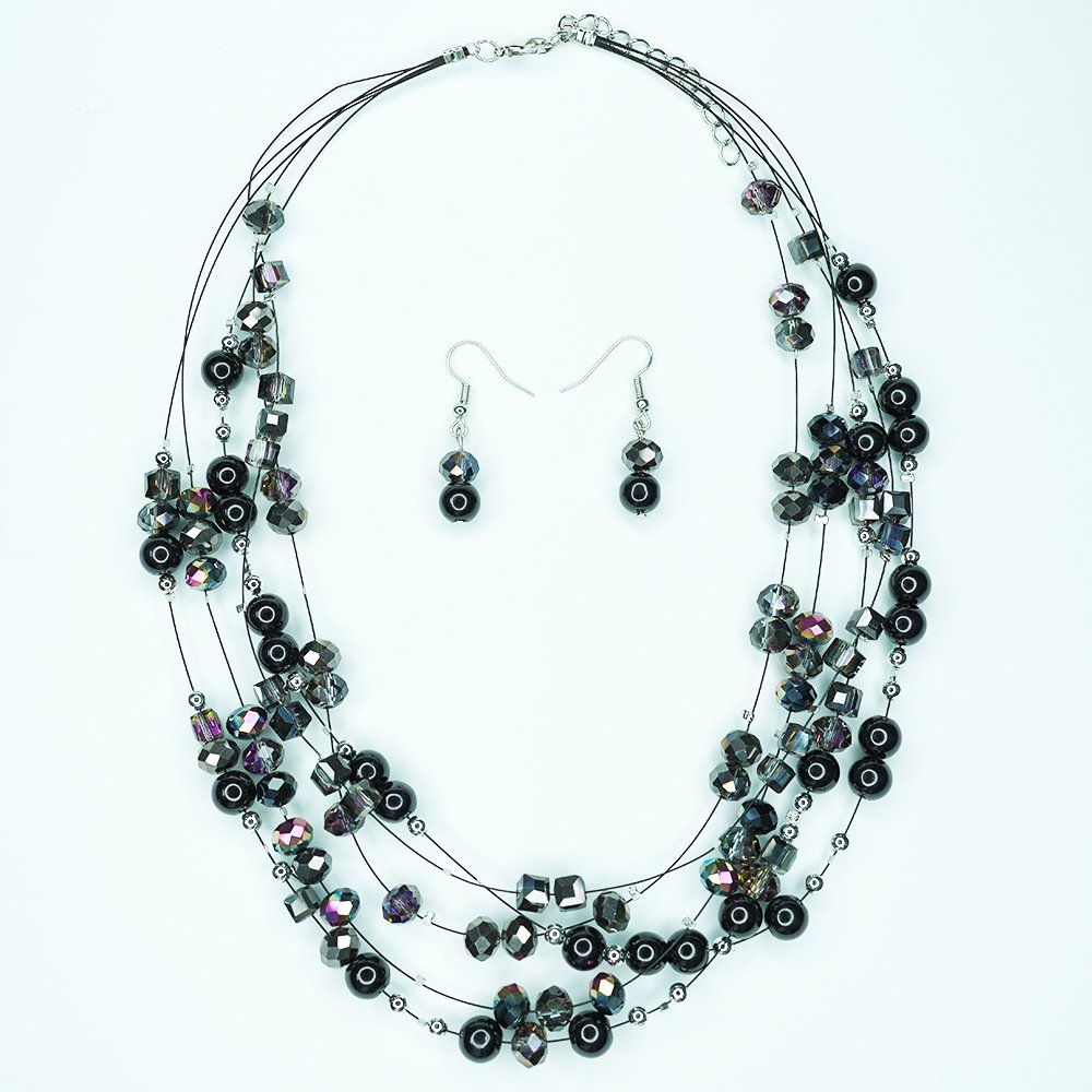 সেটে রয়েছে একটি সুন্দর crystal beaded mala এবং একজোড়া matching earrings, যা together একটি complete coordinated look তৈরি করে।