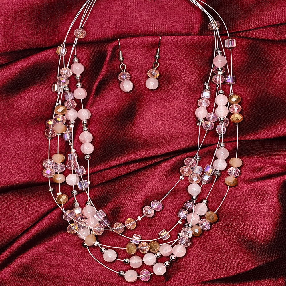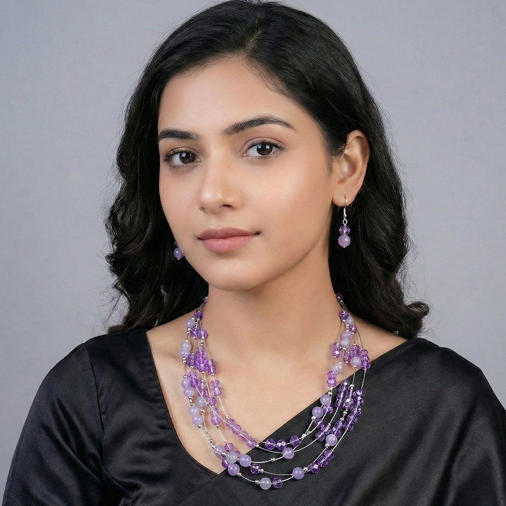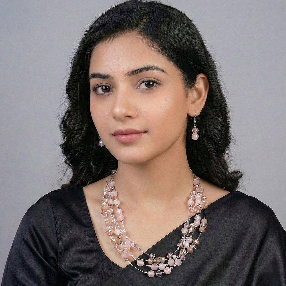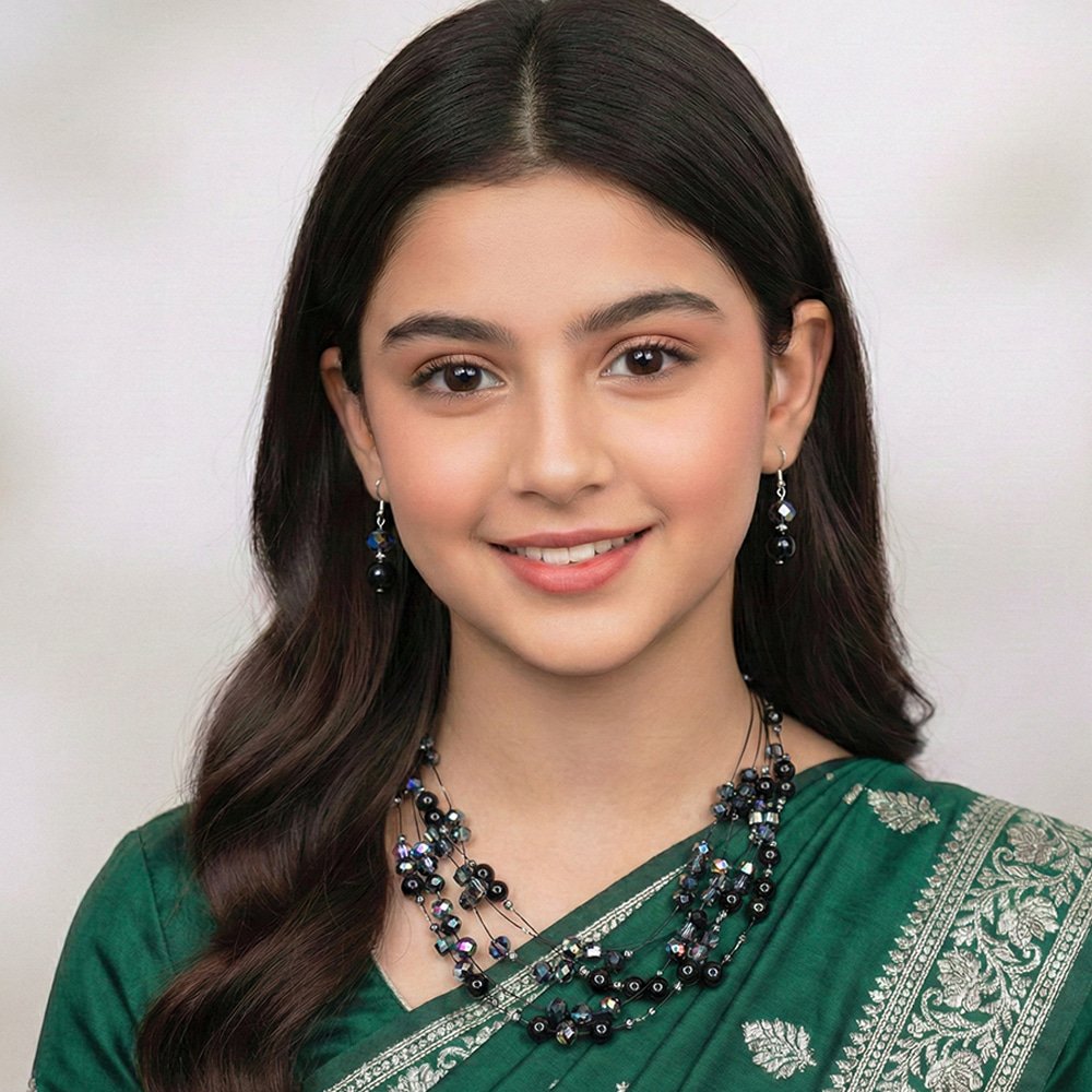 Crystal Beaded Mala with Matching Earrings – মহিলাদের জন্য ক্রিস্টাল বিডেড মালা ও ম্যাচিং কানের দুল