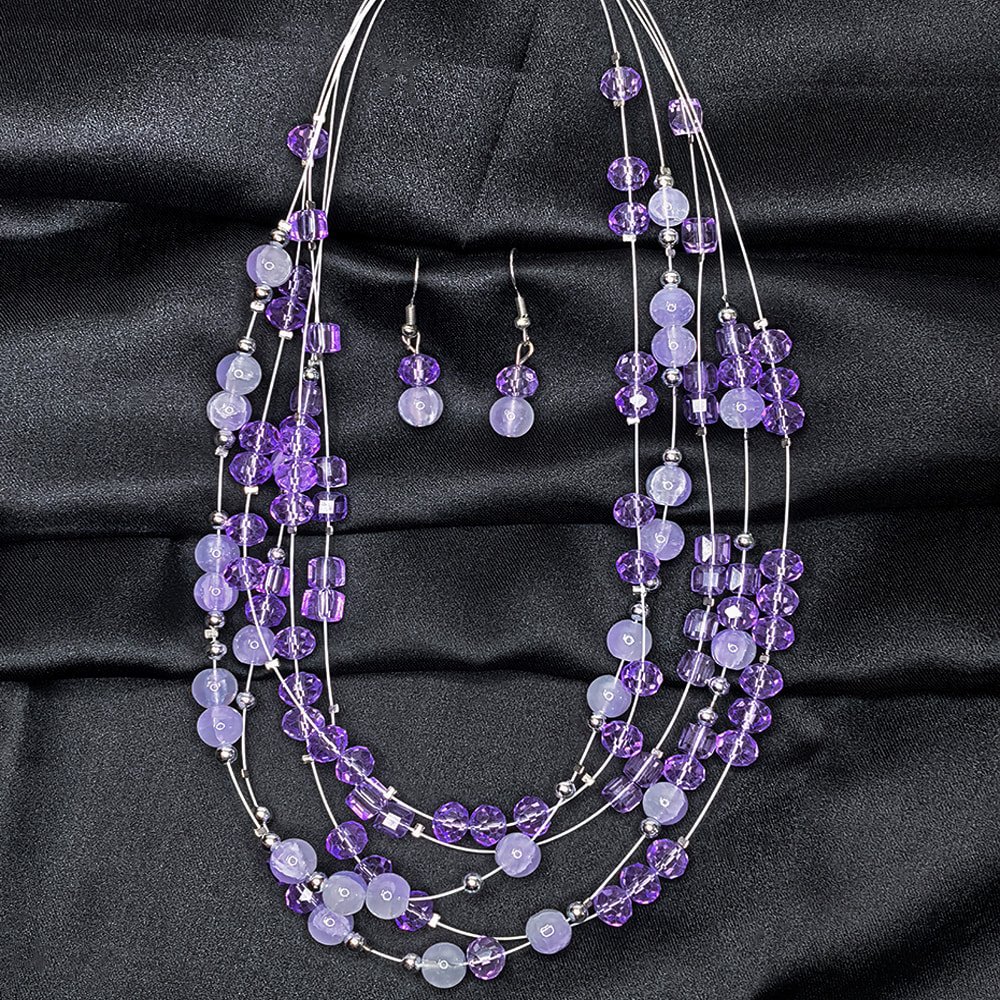 Crystal Beaded Mala with Matching Earrings। মহিলাদের জন্য। Sea Green, Purple, Black, Golden, Multi, Red ও Pink রঙে পাওয়া যায়। Elegant, lightweight এবং stylish traditional jewelry set, যা পার্টি, বিয়ে ও festive look-এর জন্য perfect।