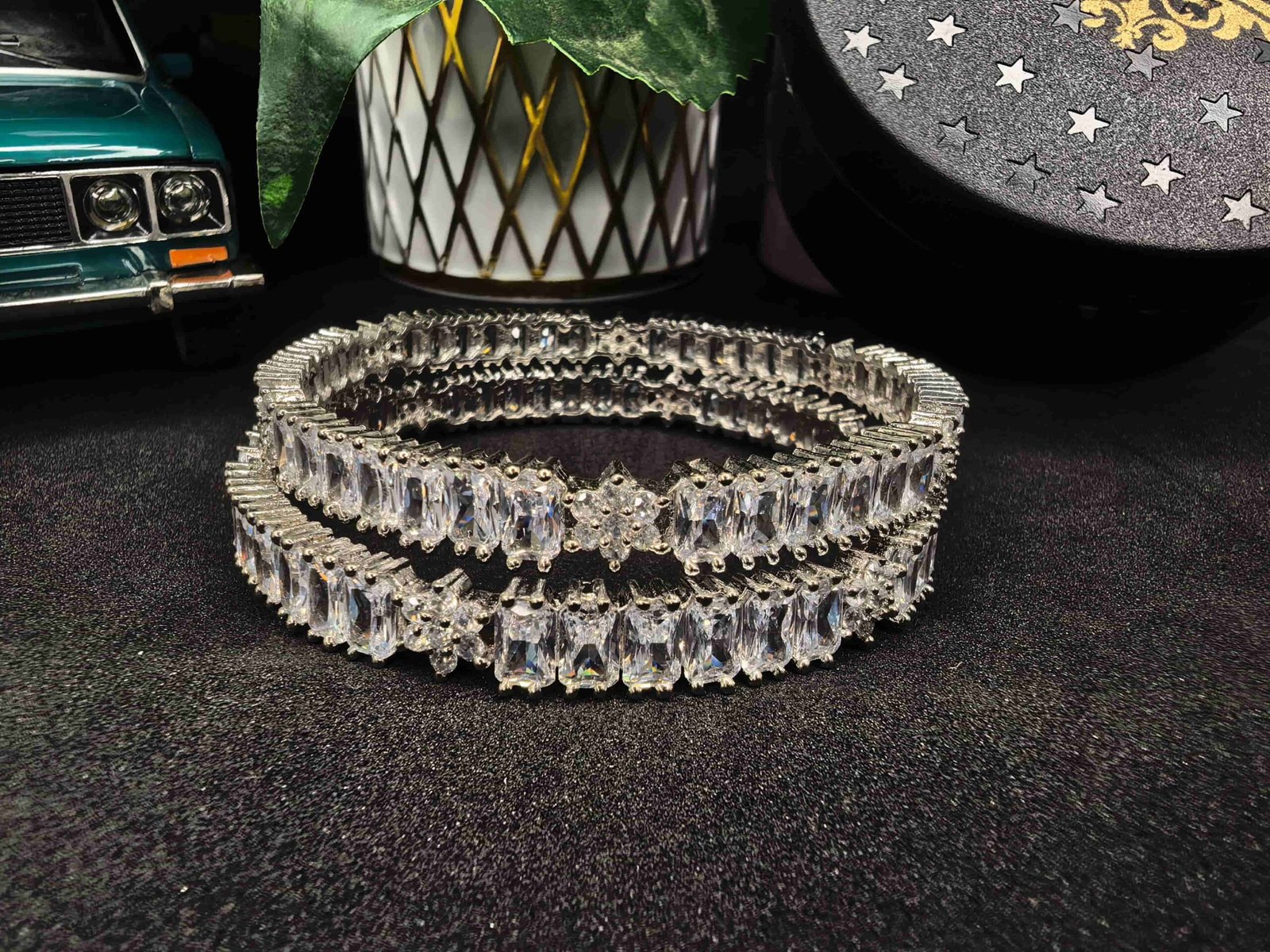 Crystal tennis bangless with cubic zirconia stones-পার্টি, বিয়ে ও উৎসবে পরার জন্য, স্টাইল ও চকচকে সৌন্দর্য বাড়ানোর জন্য।