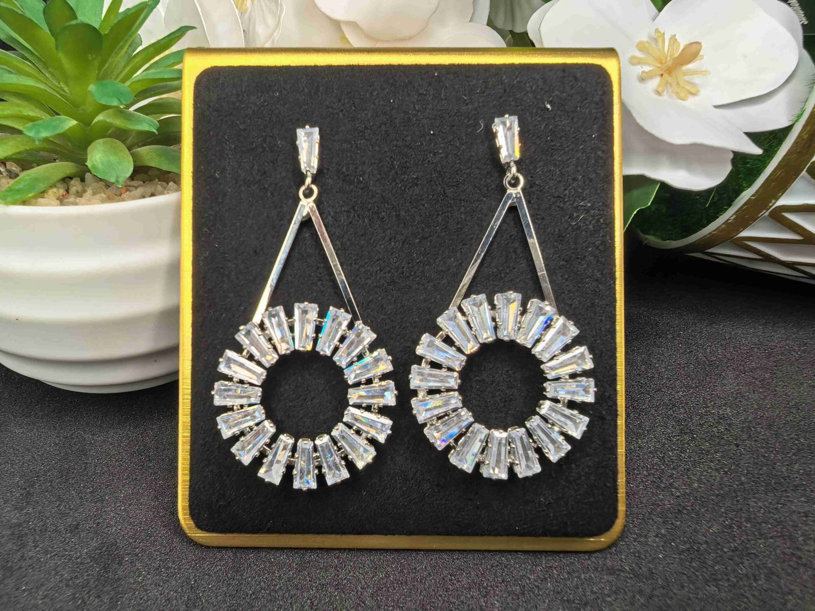 • Design: গোল্ডেন মেটাল হুক, ফাঁপা সার্কেল ও ঝকঝকে ডায়মন্ড কাট ক্রিস্টাল স্টোন