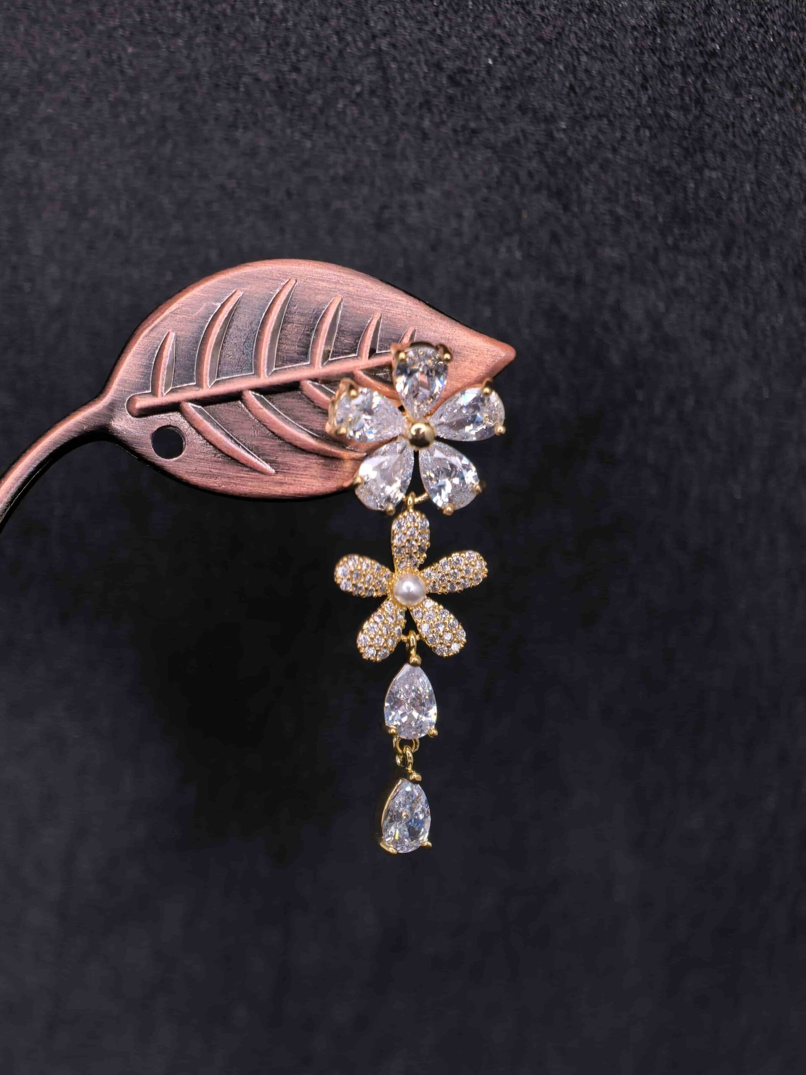 Floral Design Earrings with Zirconia Stone – মহিলাদের পার্টি, ফ্যাশন ও বিয়ের জন্য স্টাইলিশ জিরকোনিয়া স্টোন ইয়াররিং