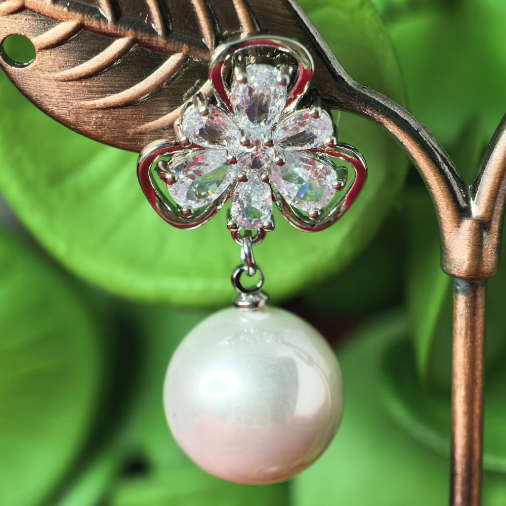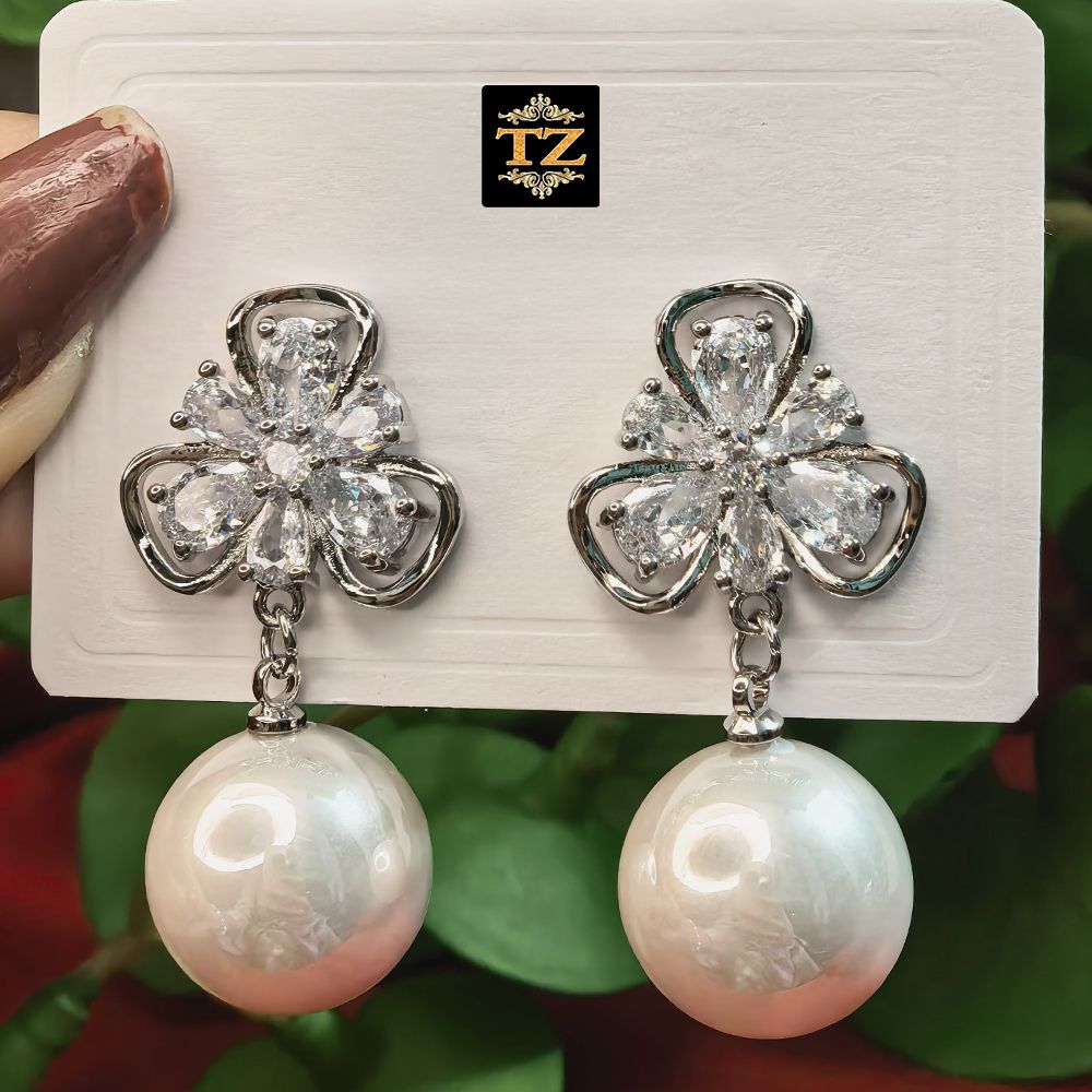 Silver and Golden Color Flower Shape Earrings with White Pearl মহিলাদের জন্য রাজকীয় ফ্লোরাল পার্ল ইয়াররিং কালেকশন