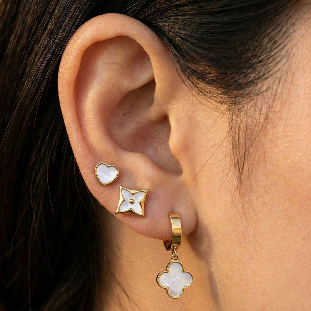 উচ্চমানের stainless steel-এর ওপর উন্নত মানের gold plating করা হওয়ায় এই ইয়ারিং সেটটি অত্যন্ত টেকসই এবং দীর্ঘদিন রঙ উজ্জ্বল থাকে। এটি একটি মাল্টি-ইয়াররিং সেট যেখানে কার্ডে থাকা ছোট ইয়াররিংগুলো স্টাড ডিজাইন এবং নিচে রয়েছে আকর্ষণীয় ফুল ডিজাইনের ঝুলন্ত (ড্যাংলিং) ইয়াররিং জোড়া। ঝকঝকে স্টোন ফিনিশ ও স্কিন ফ্রেন্ডলি হওয়ায় সেনসিটিভ ত্বকেও এটি ব্যবহার করা নিরাপদ। Lightweight ও comfortable fit হওয়ায় দীর্ঘসময় পরলেও কানে ব্যথা বা অস্বস্তি অনুভূত হয় না।