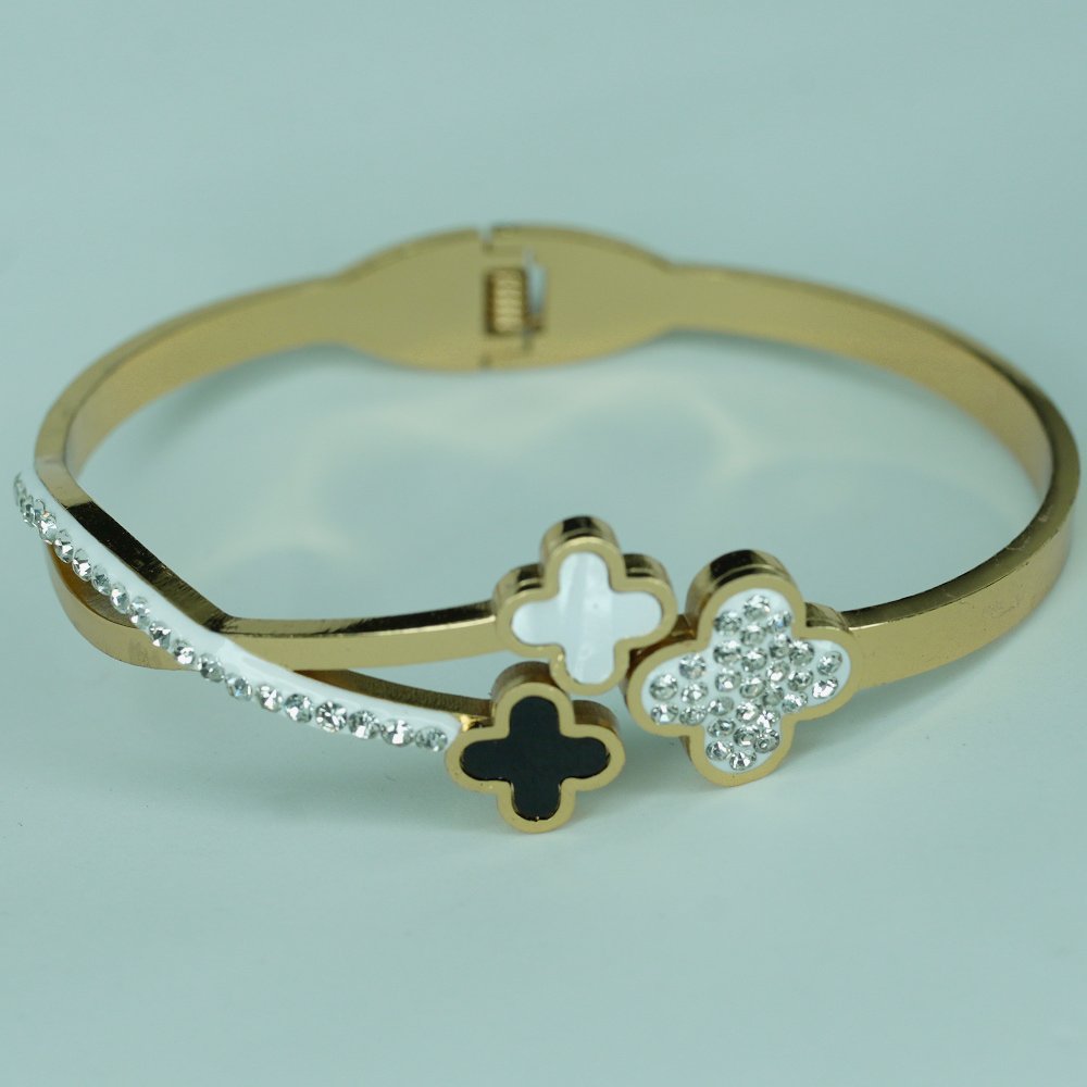 Gold Plated Stainless Steel Black and Floral Design Bracelet – মহিলাদের জন্য ব্ল্যাক ও ফ্লোরাল ডিজাইনের প্রিমিয়াম ব্রেসলেট