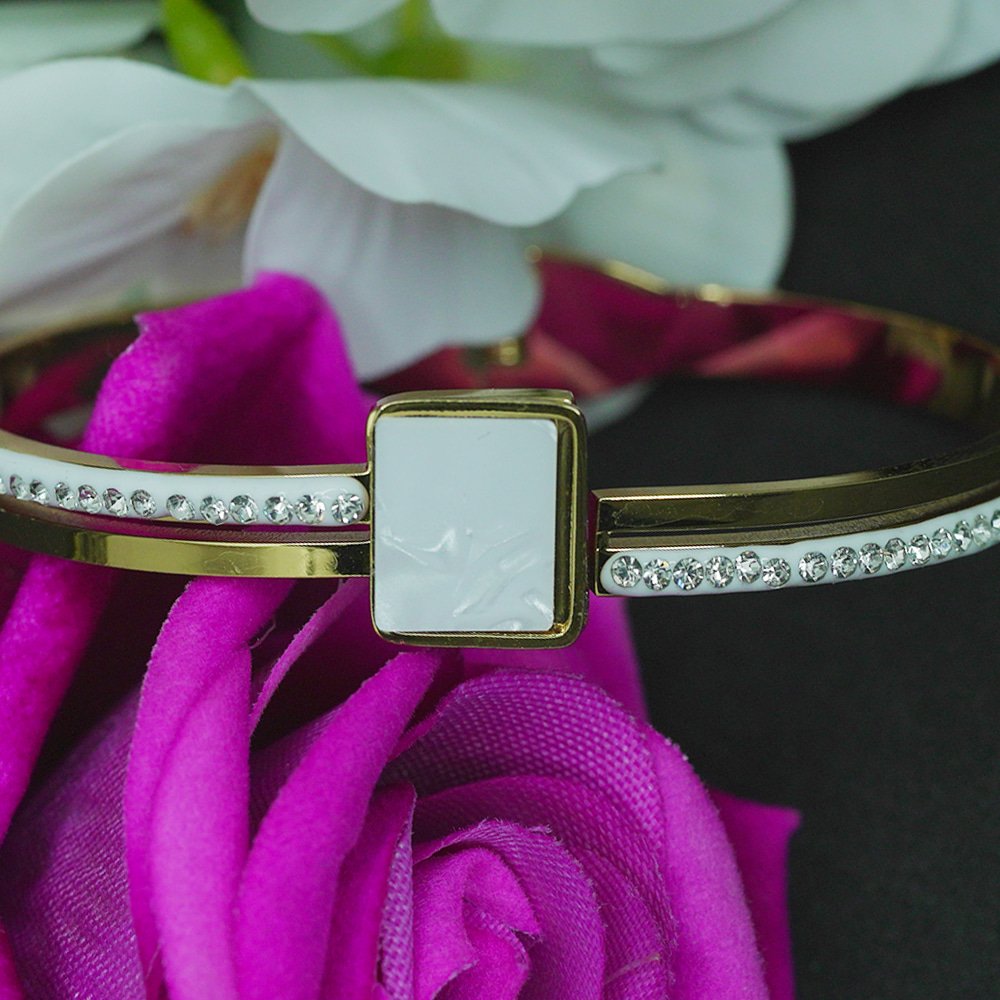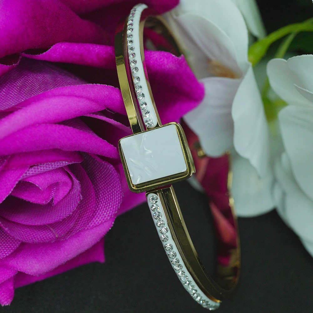 Gold palted bracelet staimlnless steel with white square shape– মহিলাদের জন্য আধুনিক ও এলিগ্যান্ট হোয়াইট স্কয়ার শেপ ব্রেসলেট