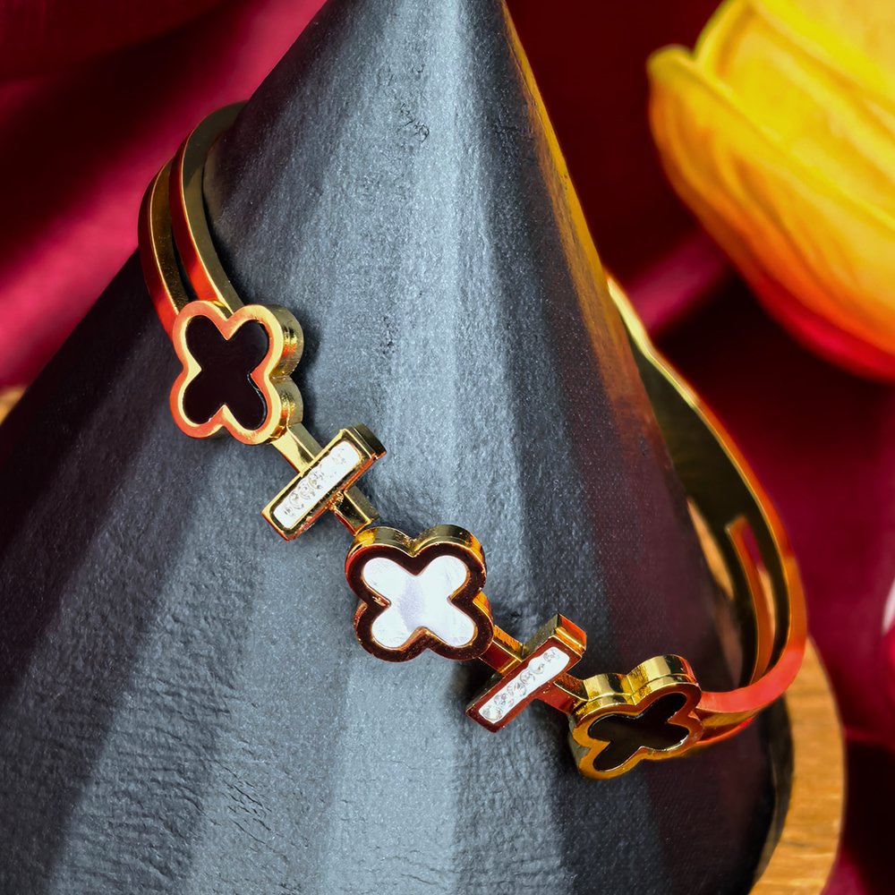 উচ্চমানের gold-plated fashion alloy দিয়ে তৈরি হওয়ায় ব্রেসলেটটি smooth finish, shiny look এবং premium feel প্রদান করে। Lightweight design হওয়ায় এটি সারাদিন পরলেও হাতে আরামদায়ক থাকে।