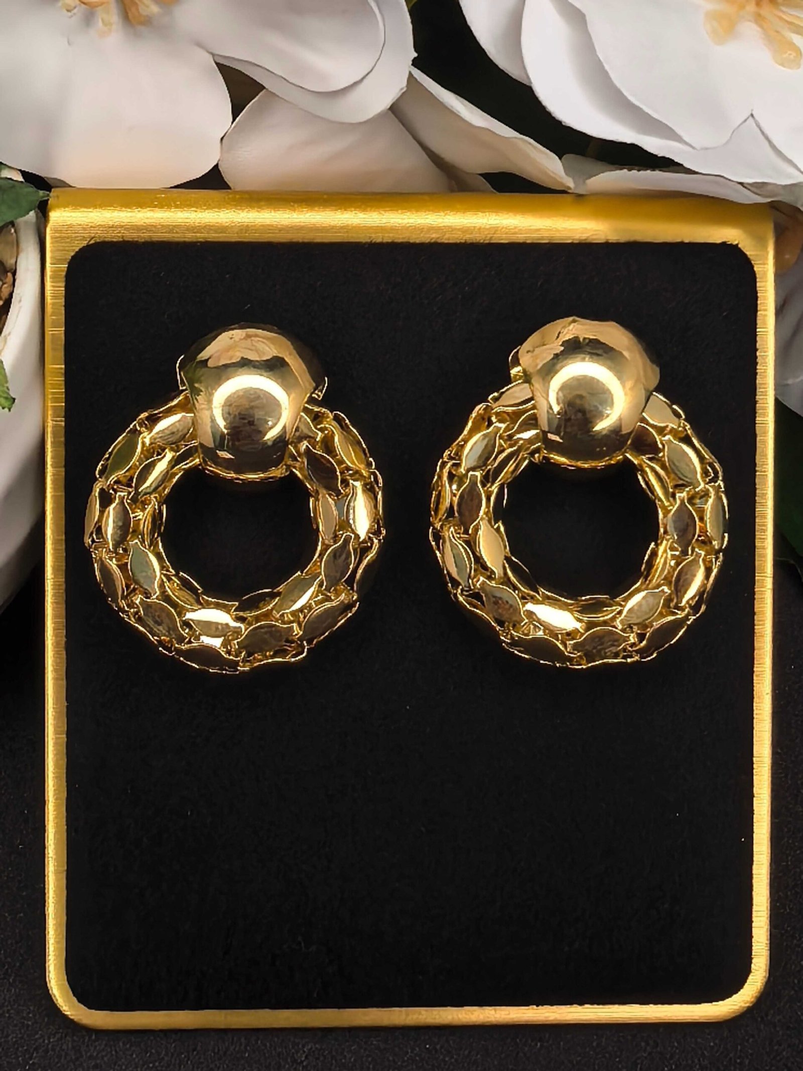 মহিলাদের গোল্ড-প্লেটেড সার্কুলার ইয়াররিংস, বোল্ড design ও মার্জিত finish সহ। Party, wedding ও festive occasions-এর জন্য perfect choice
