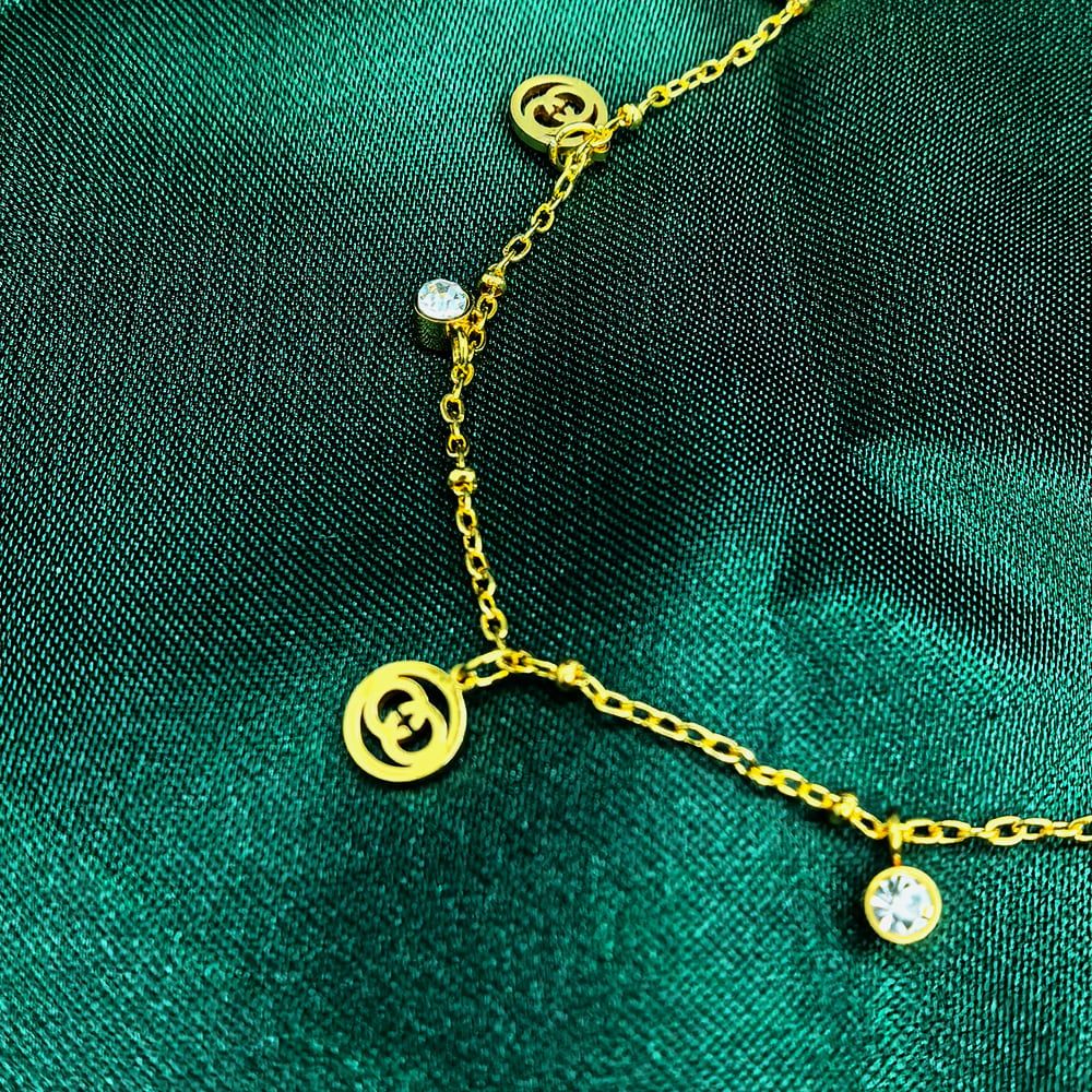 Gold plated stainless steel with gold circel and crystal stone – মহিলাদের জন্য প্রিমিয়াম স্টেইনলেস স্টিল ডিস্ক ও ক্রিস্টাল নেকলেস