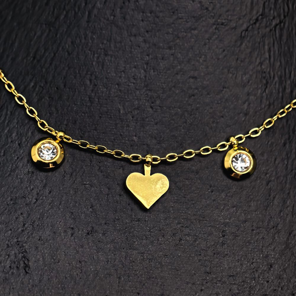 Gold plated stainless steel with love shape and crystal stone – মহিলাদের জন্য প্রিমিয়াম স্টেইনলেস স্টিল লাভ ও ক্রিস্টাল নেকলেস