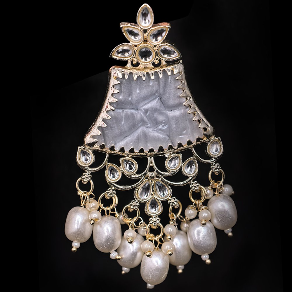 Kundan Earrings White Stone and Pearl – মহিলাদের জন্য কুন্দন হোয়াইট স্টোন ও পার্ল ইয়ারিং