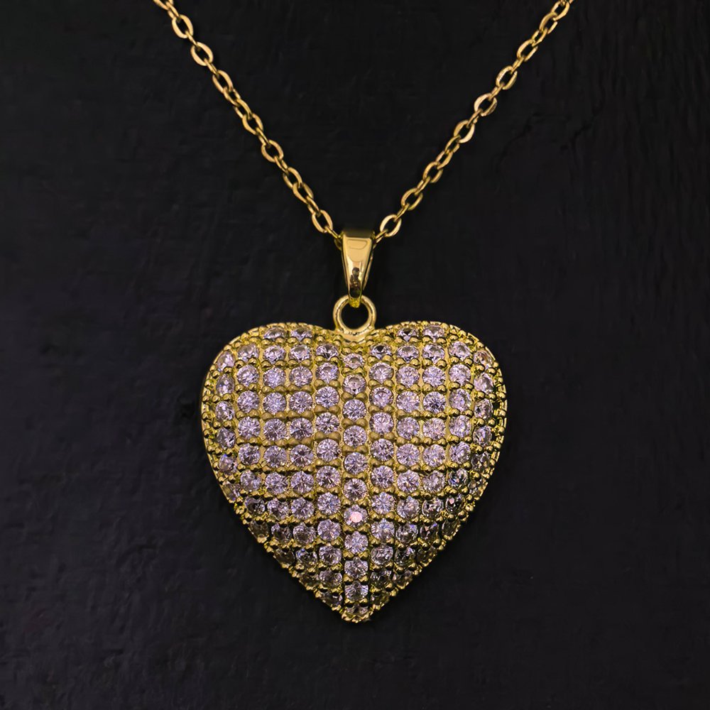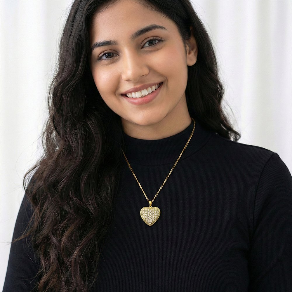 Gold & Silver Plated Love Shape Zirconia Stone Necklace – মহিলাদের জন্য প্রিমিয়াম হার্ট শেপ জিরকোনিয়া স্টোন নেকলেস