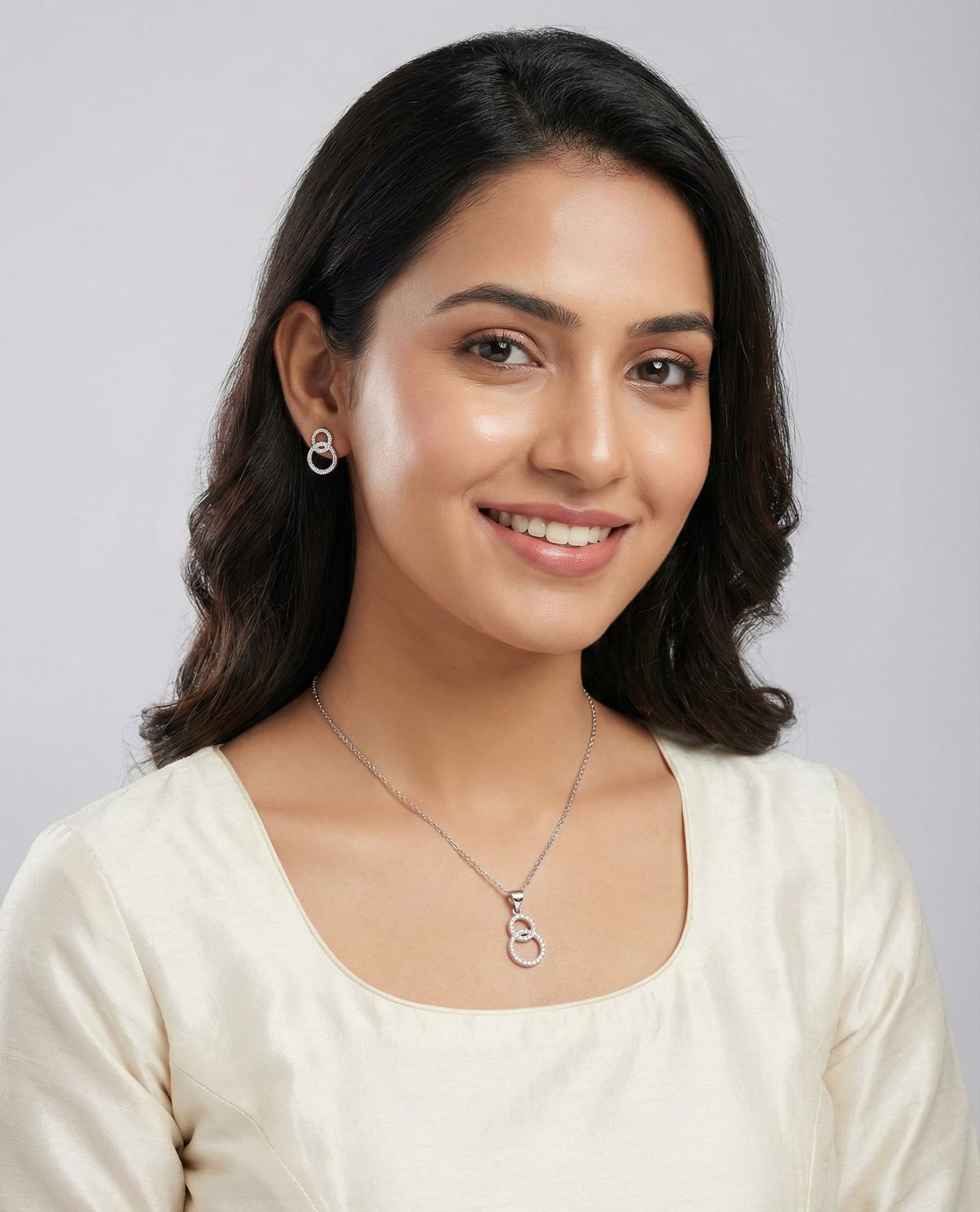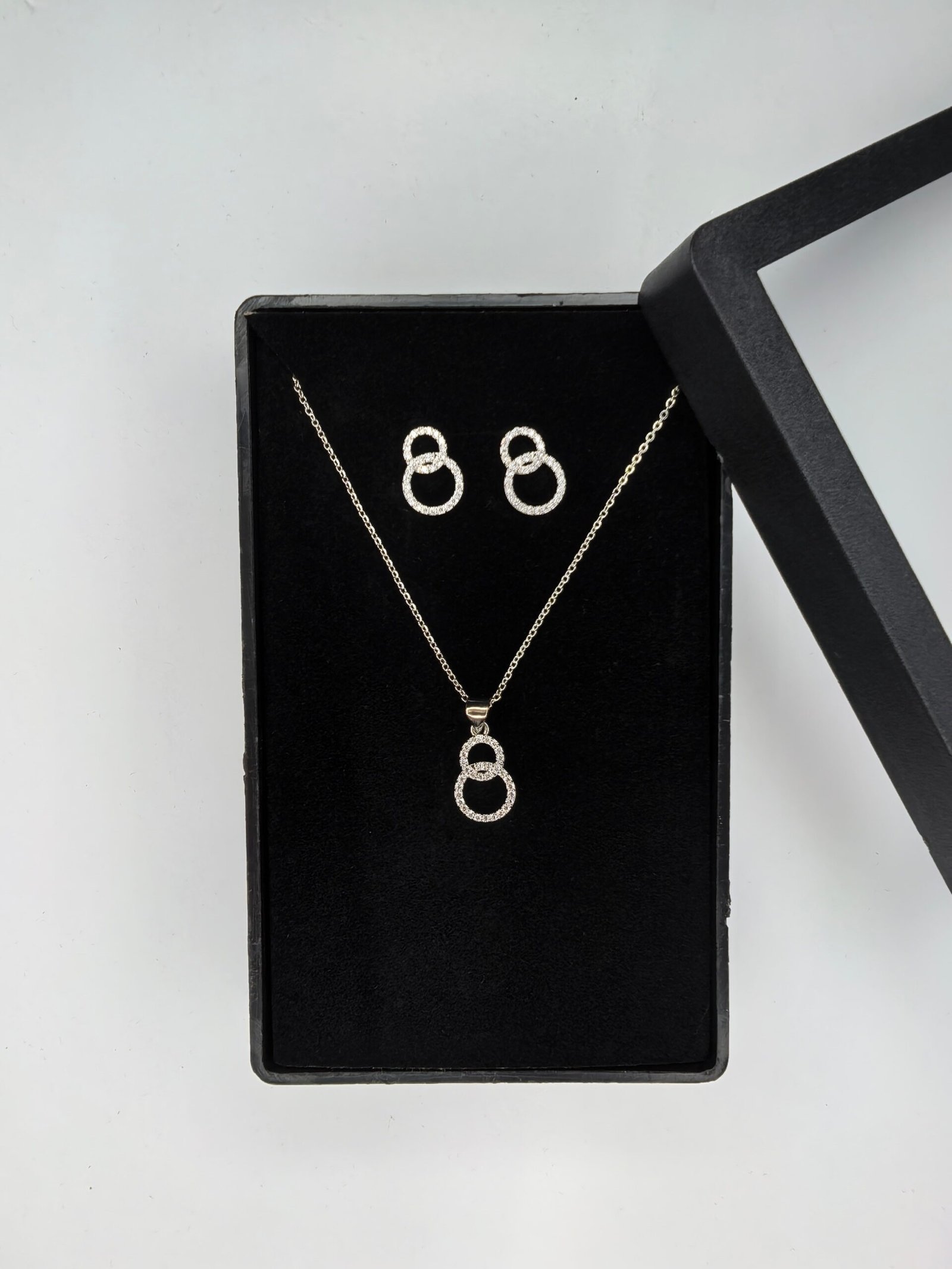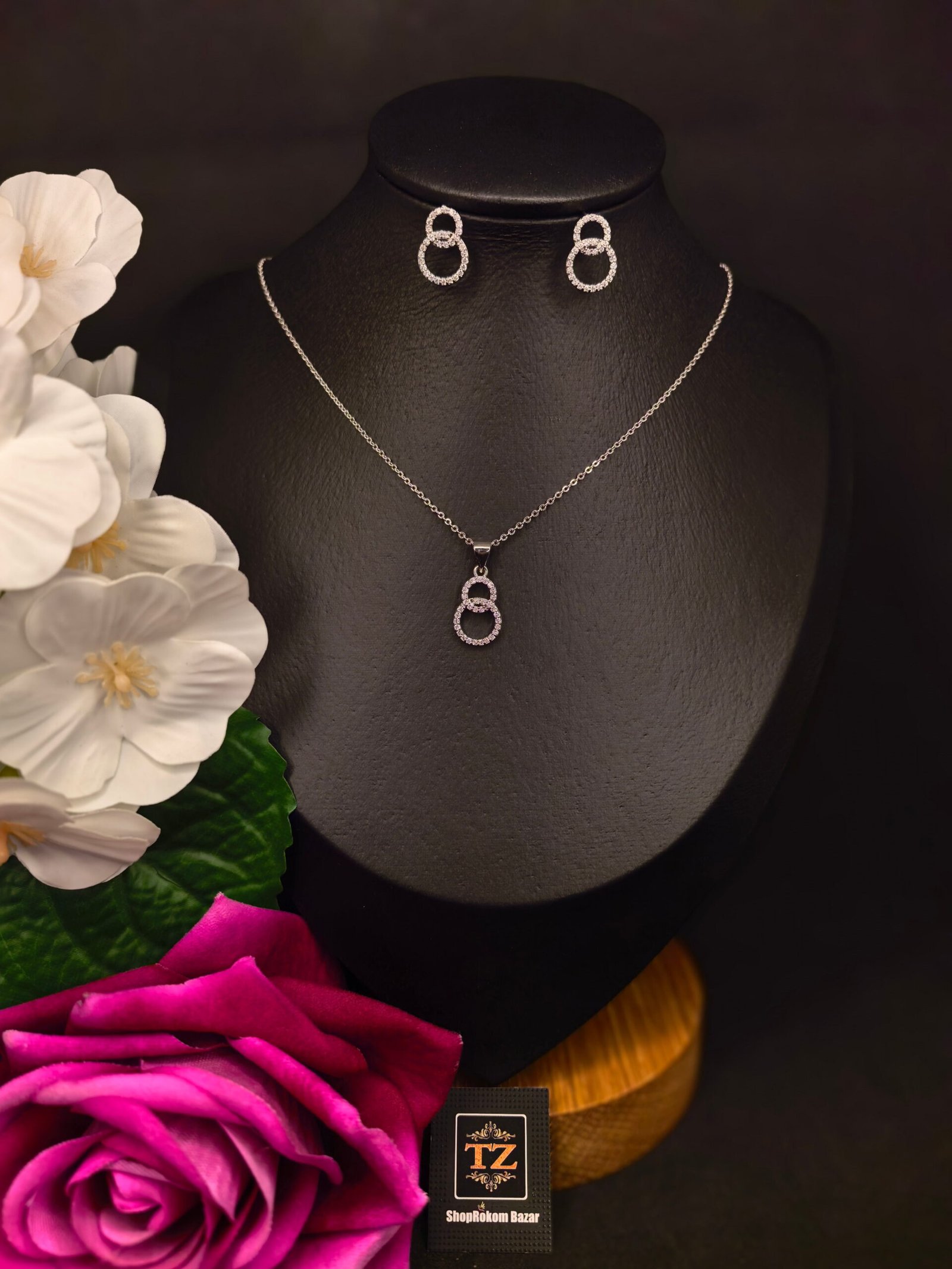আপনার সাজে আভিজাত্যের ছোঁয়া আনতে আমাদের এই প্রিমিয়াম কোয়ালিটির জুয়েলারি সেটটি হতে পারে সেরা পছন্দ। এর আধুনিক ইন্টারলকিং ডাবল সার্কেল (Interlocking Double Circle) বা ইনফিনিটি শেপ ডিজাইন আপনার ব্যক্তিত্বে যোগ করবে এক অনন্য মাত্রা। সিলভার ফিনিশিংয়ের ওপর বসানো সূক্ষ্ম ও উজ্জ্বল স্টোনের কাজ সেটটিকে করে তুলেছে অত্যন্ত গর্জিয়াস এবং আকর্ষণীয়।