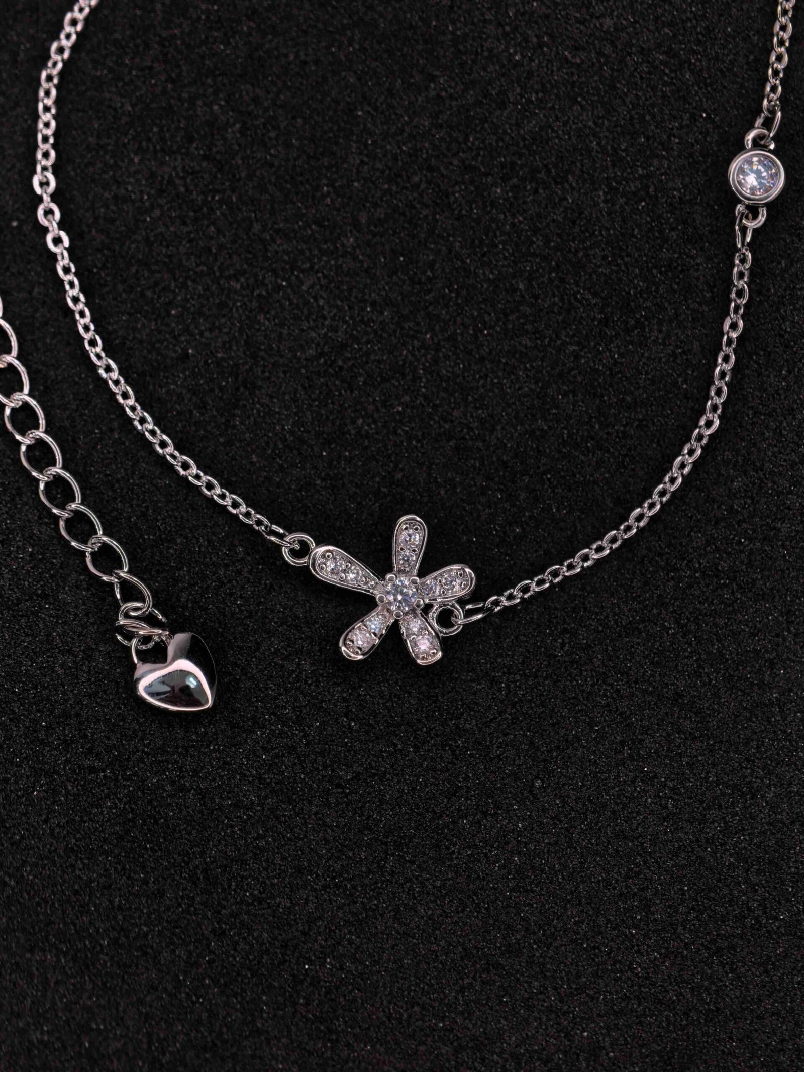 Silver Plated Diamond Stone Anklet for Women | মহিলাদের মিনিমাল বাটারফ্লাই চার্ম সিলভার পায়েল ডেইলি ও পার্টি ব্যবহারের জন্য