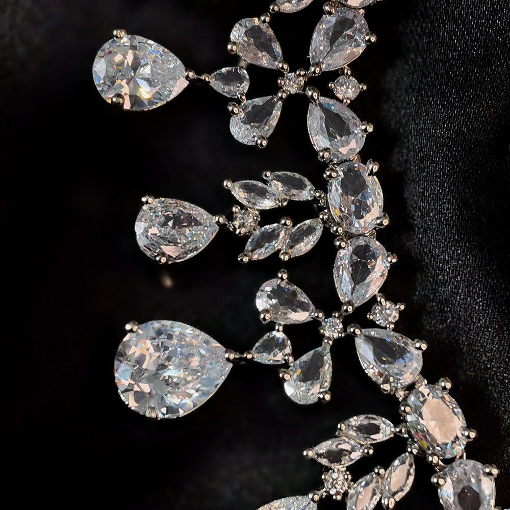Silver Toned 3 Pieces Zirconia Necklace Set for Women – আপনার সাজে রাজকীয় আভিজাত্য আনতে মহিলাদের জন্য হার্ট শেপ স্টোন নেকলেস সেট