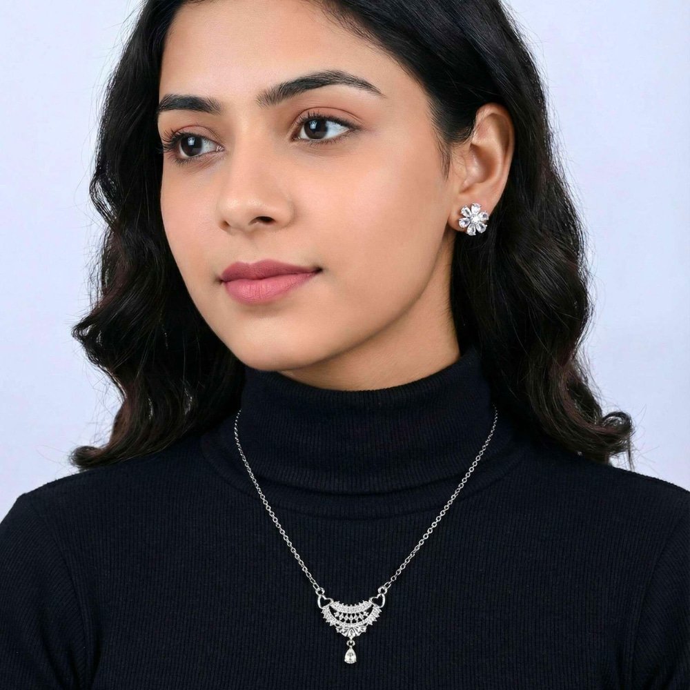 Silver-Toned Necklace Set with Earrings – মহিলাদের পার্টি ও বিয়ের জন্য স্টাইলিশ ট্র্যাডিশনাল জুয়েলারি