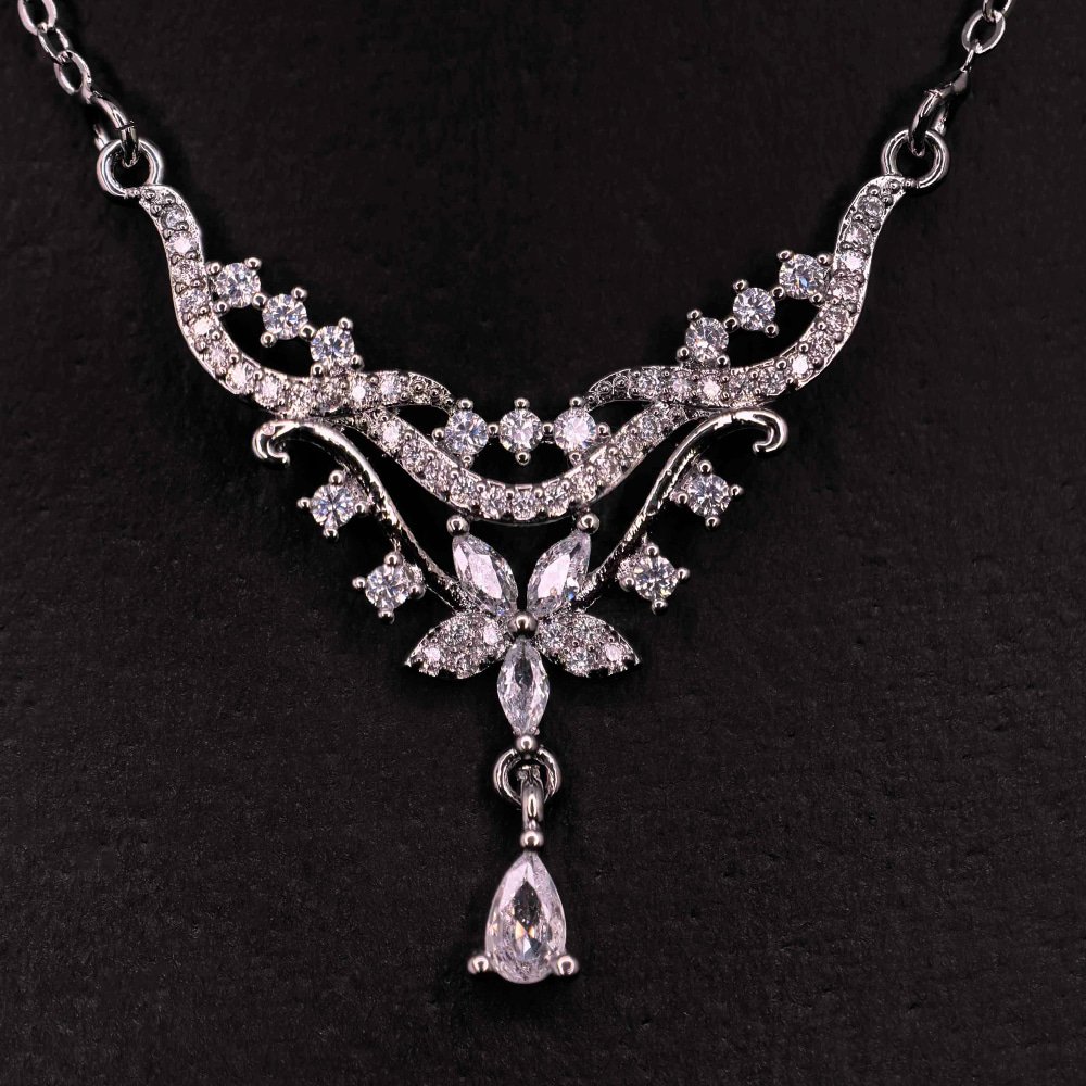 Silver-Toned Necklace Set with Leaf and Floral Design – মহিলাদের পার্টি ও বিয়ের জন্য স্টাইলিশ লিফ ও ফ্লোরাল ডিজাইনের জুয়েলারি