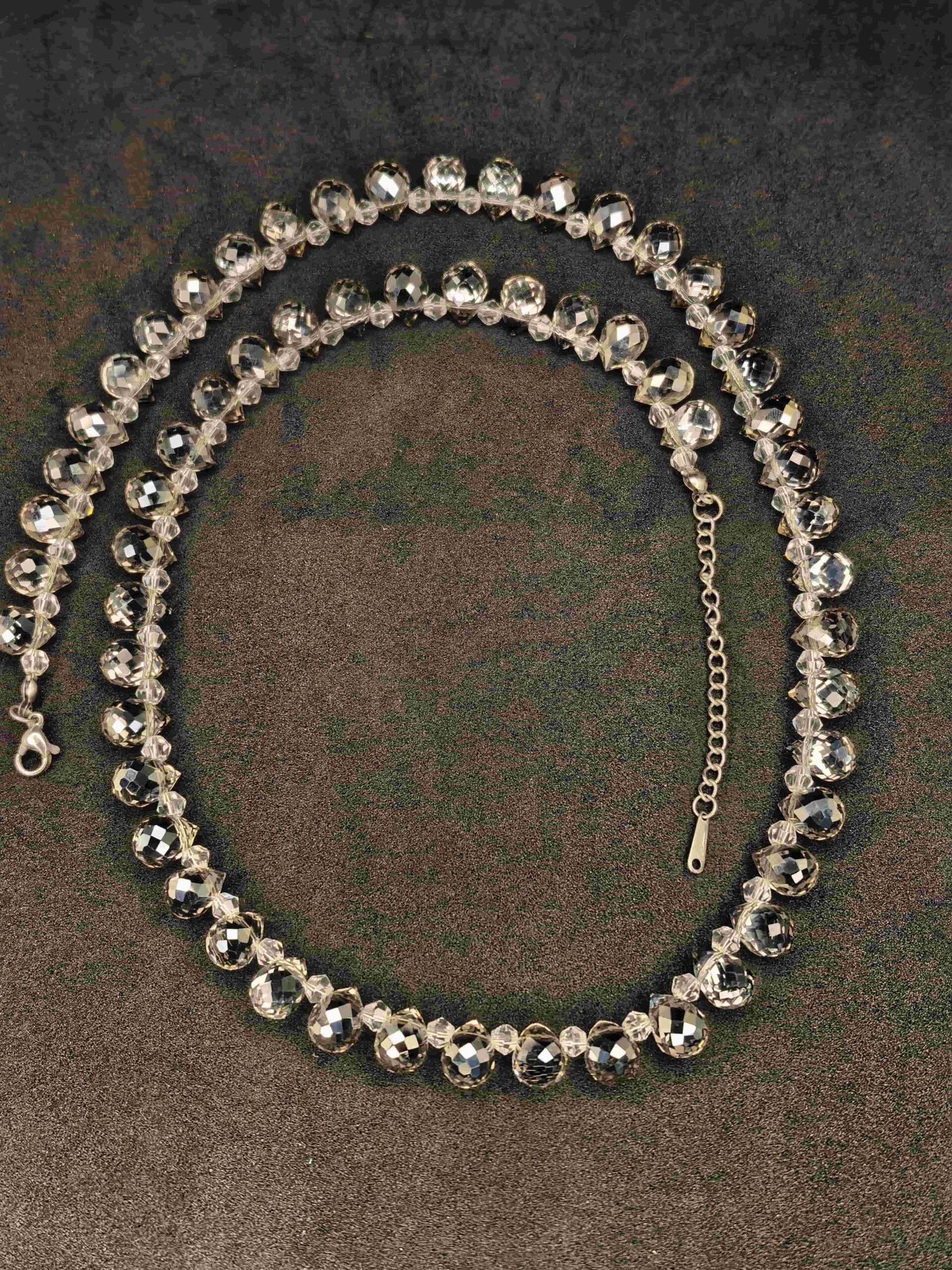 মহিলাদের ফ্যাসেটেড গ্রে গ্লাস বীডেড মালা, sparkling beads ও classy design সহ। Party, wedding ও festive occasions-এর জন্য perfect choice