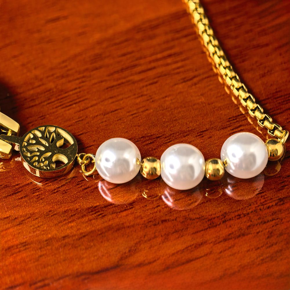 Bracelet Type: Pearl Beads + Gold-Tone Chain