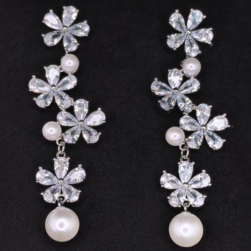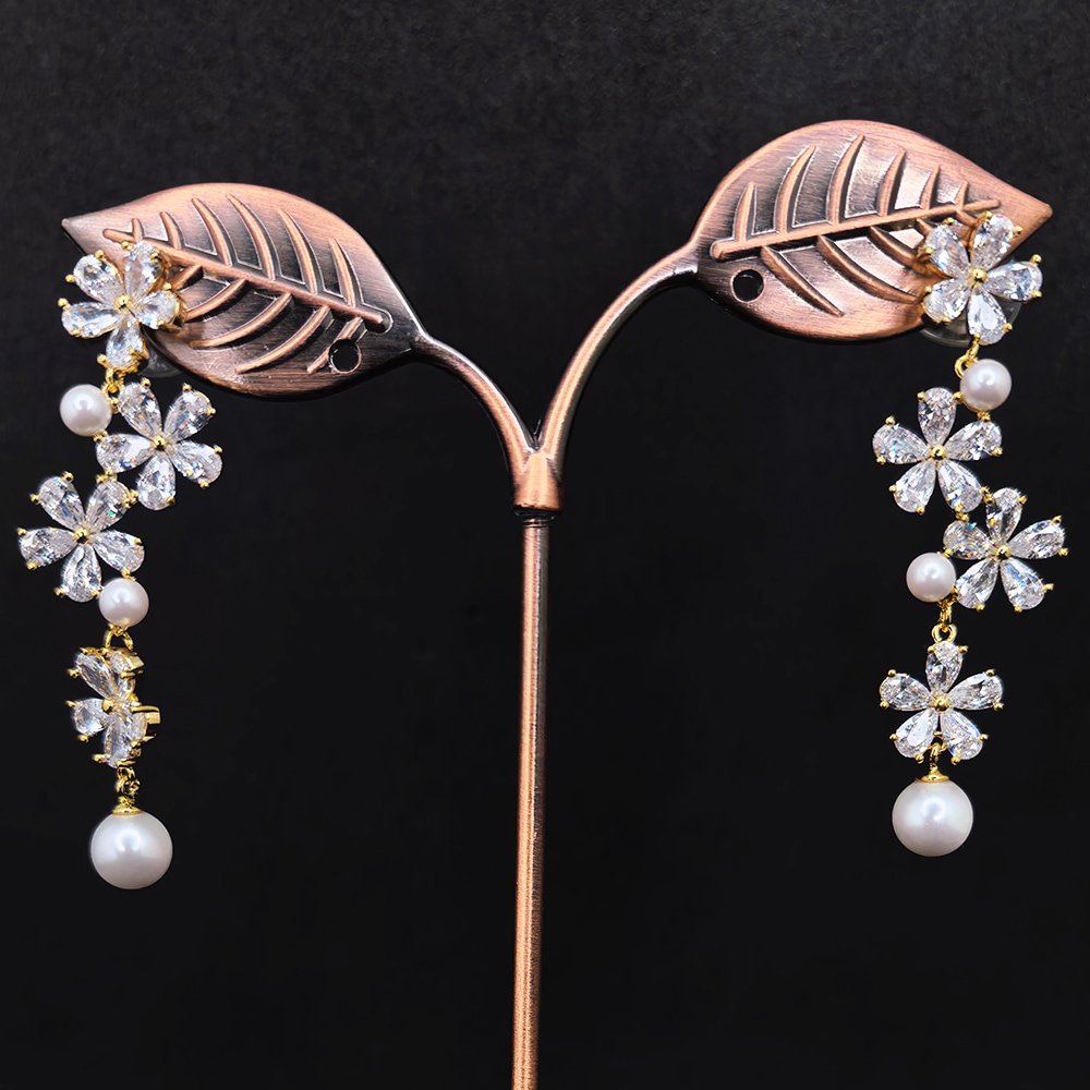 Zirconia Stone Floral Layer Earrings – মহিলাদের পার্টি, ফ্যাশন ও বিয়ের জন্য স্টাইলিশ জিরকোনিয়া ফ্লোরাল লেয়ার ইয়াররিং