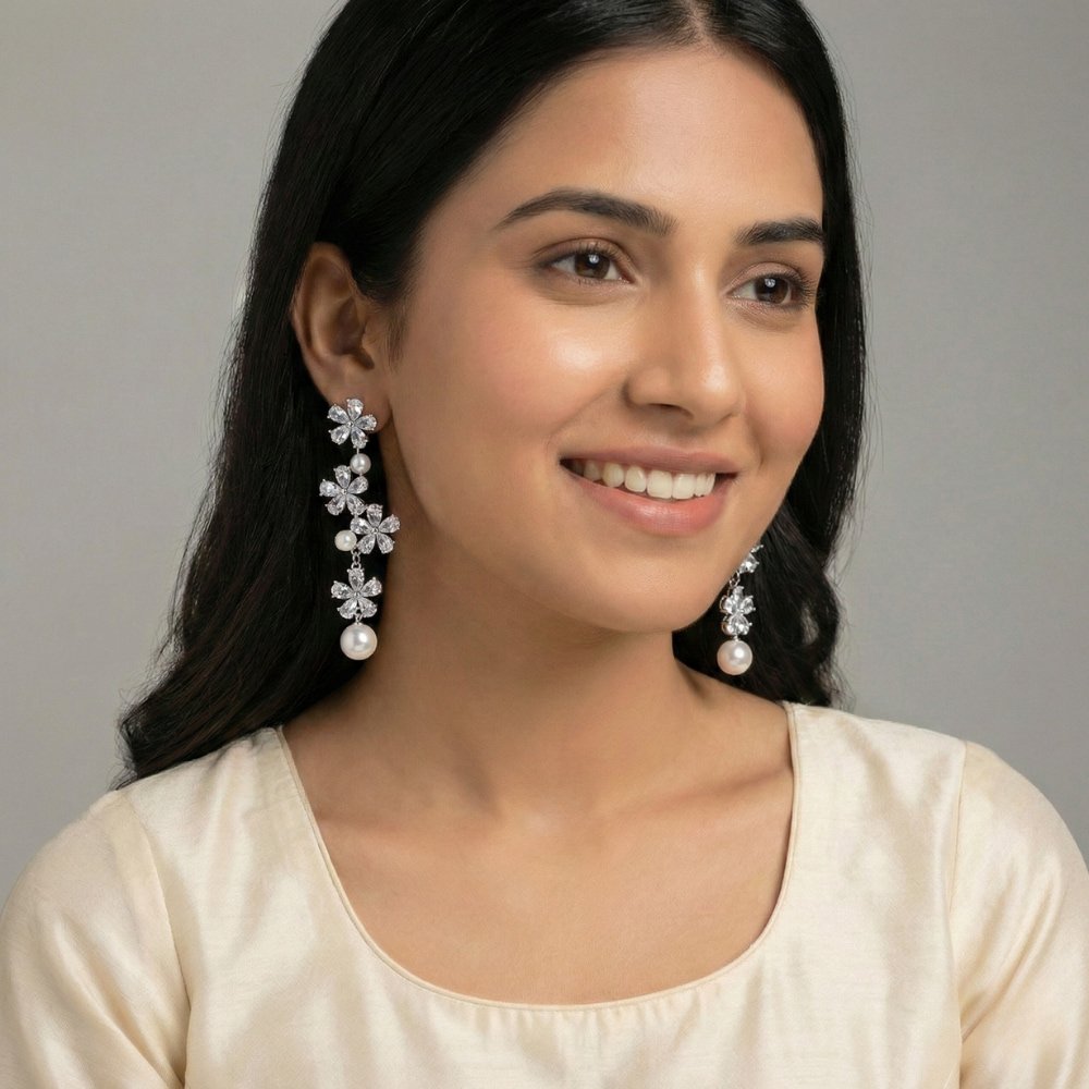 Elegant, sparkling ও sophisticated—এই floral layer earrings আপনার look-কে করে তোলে আরও glamorous ও stylish।